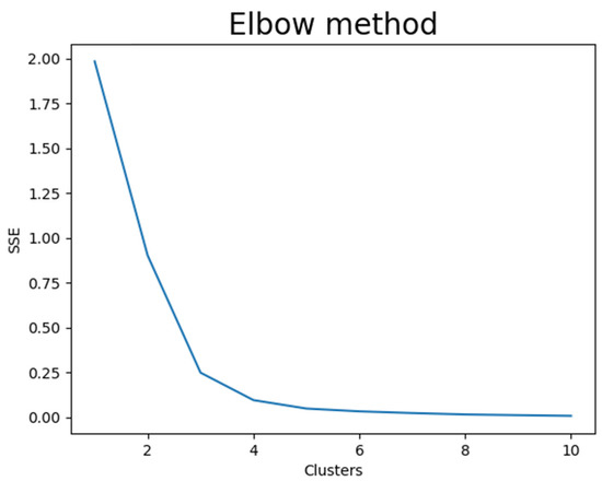 The elbow method allows selection of the ideal number of clusters for the K-means algorithm implementation. To use K-means, it was necessary as a first step to identify which was the best number of clusters in our model [53]. Then, the K-means algorithm was fitted with the data of each variable of 2011. Before that, data were scaled to values between 0 and 1, in order to reduce the outliers due to differences between measurement units of the values. After that, the algorithm was used to predict the corresponding cluster for data in 2011 and 2021, allowing us to see the changes over the period of 10 years.