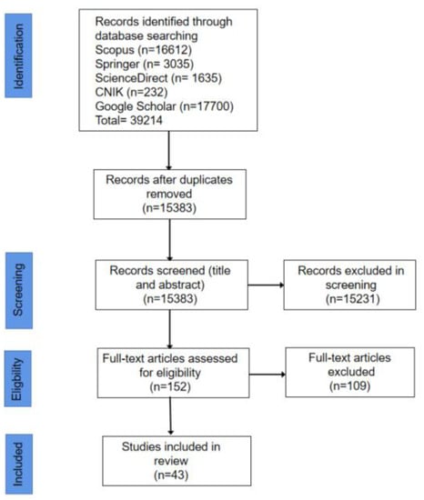 This review was carried out according to the Preferred Reporting Items for Systematic Review and Meta-Analyses (PRISMA). Based on specific search strategies, eligibility criteria, data extraction guidelines, and analysis methods, a scoping review was conducted, as illustrated in Figure 1. The Scopus, Springer, ScienceDirect, and China National Knowledge Infrastructure (CNIK) databases as well as Google Scholar were all systematically searched. This study also reviewed the literature from journalistic studies and reports, with all articles that were potentially relevant being read.