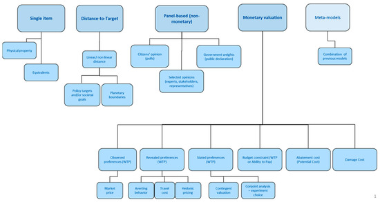 Arendt et al. [36] summarizes monetary weightings in three groups: (i) The market price approach; (ii) The revealed preferences approach; (iii) The stated preferences approach. Alroth [25] grouped them as: (i) Market price/revealed willingness to pay; (ii) Expressed willingness to pay; (iii) Imputed willingness to pay; (iv) Political willingness to pay; and (v) Avoidance costs. Pizzol et al. [28] provides a broad review on monetary valuation in LCA.