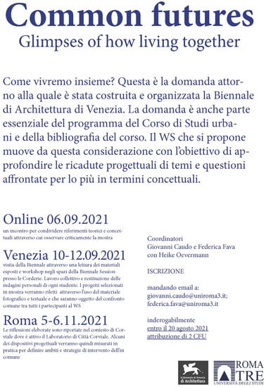 An online preparatory phase anticipated the various associated activities. This ultimately consisted of recapping the common cultural background, built among almost all the participants during the Urban Studies course convened by Giovanni Caudo at the Architecture Department, Roma Tre University; and an initial collection of further texts, articles, and experiences related to the 2021 Biennale, thereby providing the third set-of-knowledge (theory). Identity and commonality are some key concepts that built the link between the theoretical basis for the collective reflection offered during the Urban Studies course and the possible keys to approach the Biennale.