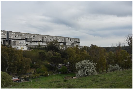 Embodying principles of the Modernist movement in architecture and thus following the fate of its contemporary oeuvres, Corviale is reckoned as a post-WWII monument. Today it is shortlisted in the Italian Architecture Census of the second half of the 20th century, which collects contemporary architecture considered of historic and artistic value [44]. However, the complex remains unfinished and has become a symbol of public failure, criminality, and growing despair. Since the 1990s, Corviale became a major field of political confrontation. Depicted as a modern monster, right-wing narratives oriented the public debate towards demolishing Corviale, presenting it as symbolising a failed leftist vision of architecture and urbanism [45].