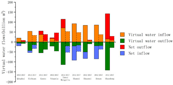 4.2. Virtual Water Flow Patterns between Provinces within the Yellow River Basin