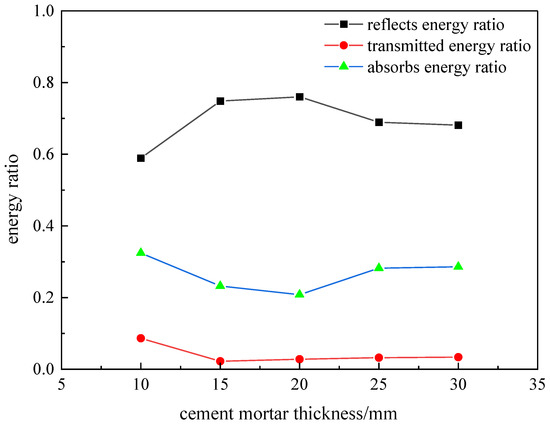 The relation between different energy ratios and specimens’ ratios cement mortar thickness.