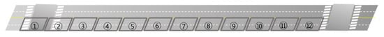 In this study, a section of 300 m between intersections was divided into 12 sub-sections of 25 m, and vehicle emissions and energy consumption in each sub-section were calculated (Figure 4). ANOVA was performed to verify the statistical significance of the differences in vehicle emissions and energy consumption by sub-section. Based on the analysis, it was confirmed that energy consumption and emissions were different in the various sub-sections.