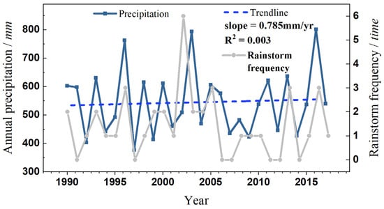 Changes in precipitation levels and storm frequency of She County since 1990. Note: The figure was drawn by the authors and used in the GIAHS proposal of the SDSTS [51] as scientific support.