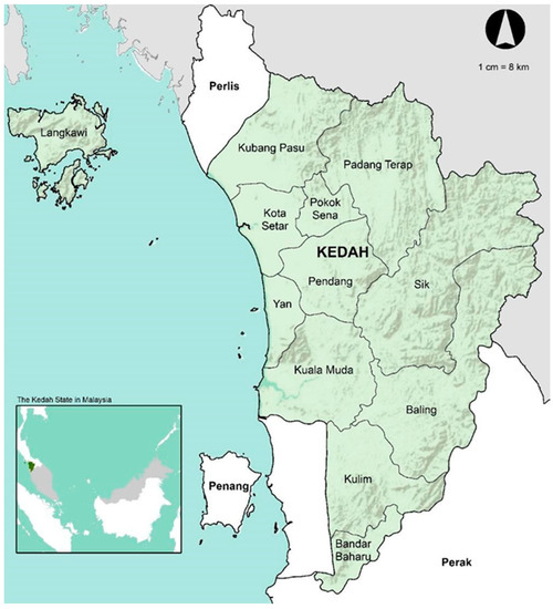 - Jabatan Perangkaan Malaysia. Newsletter: Kependudukan Negeri Kedah. DOSM/DOSM.KEDAH/1.2020/SIRI 79.; 2020. Available online: https://www.dosm.gov.my/v1/uploads/files/6_Newsletter/Newsletter%202020/DOSM-DOSM-KEDAH-1.2020-Siri-79.pdf (accessed on 8 December 2022).