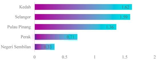 The top five states of origin of tourists visiting Kedah in 2019 (Million). Source: [44].