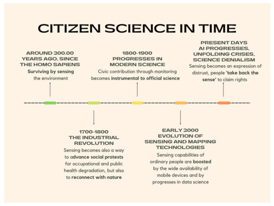 22]. This development of our senses to detect environmental risks could already be considered an embryonic form of citizen science, since environmental information was collected for making assumptions on what was safe, although at the time there were not defined roles such as scientists and lay citizens, or governors, for that matter [