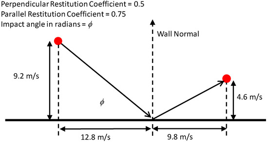 For standard particle-wall interaction, the momentum changes of the droplet when hitting the wall is determined by the perpendicular and parallel coefficient of restitution. The coefficient value of 1 represents the elastic collision. The parallel coefficient should always be 1, while the perpendicular coefficient depends on the particle material. In this case, the water droplet will cause a wall wetting phenomenon, so this study defined the perpendicular coefficient of restitution as 0 to eliminate any particle reflection. To better understand the model, please refer to the illustration in Figure 2.