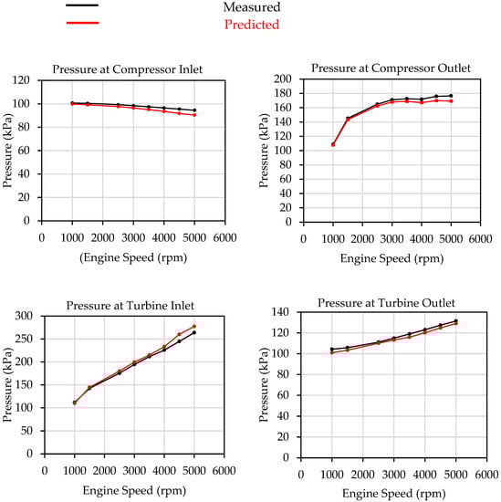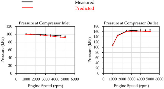 To investigate the effect of pre-turbocharger turbine water injection on the engine system, the temperature reduction obtained from the CFD simulation was plugged into the engine model. The study utilised AVL BOOST (AVL List GmbH), commercial 1D engine simulation software. The engine model is comprised of all the main components, such as throttle, cylinder, engine, plenum, injectors, turbocharger, intercooler, and air filter. Measuring points (MP) were placed at the exact location where the transducers were installed in the test bench engine. All the engine components in the engine model were arranged as close as possible to the engine test bench setup.
