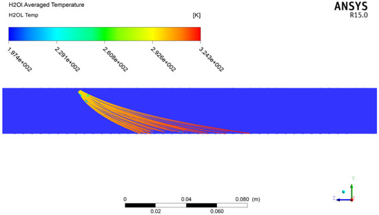 The study implemented the LE approach to solve the multiphase flow for this research. This is because Lagrangian tracking can capture each representative particle’s trajectory, mean diameter, and averaged temperature as a dispersed phase. Meanwhile, the continuous phase gas mixture must be computed by the Eulerian model. The tracking was carried out by forming a set of ordinary differential equations in time for each particle, consisting of equations for the position, velocity, temperature, and masses of species. Each particle is tracked from their injection point until escaping from the domain. The method integrates the three-dimensional trajectories of the particles based on the forces acting on them from the surrounding fluid and other sources [36,37].