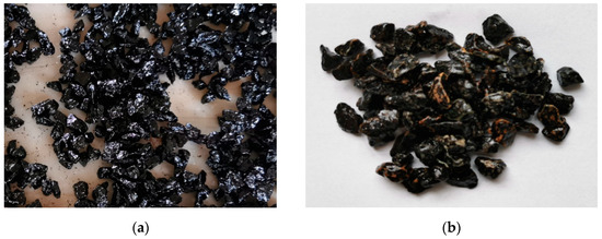 Samples before and after the affinity test: (a) Aggregates freshly coated with binder; (b) Sample analysed after 6 h of rotation.