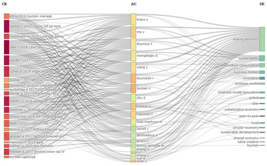 Bibliometrics can also be employed to focus on scientometric mapping, which investigates themes within a specific research area by engaging in citation analysis, co-citation analysis, bibliometric coupling, co-keyword and co-authorship analyses. By applying a bibliometric analysis, scholars have identified four clusters of existing research through co-citation analysis: freelance work and its implications; transportation and solutions for the sustainable development of the sharing economy; user experience and collaborative consumption; and the sharing economy in the context of hospitality and tourism [8,30]. This category of application can be employed to forecast future research directions through thematic mapping, thematic evolution factor analysis, and other enrichment technologies.