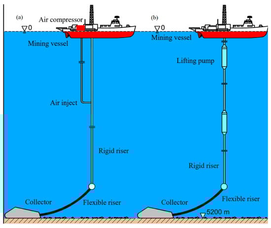 OMI pilot mining system configuration: (a) air lift system; (b) pump lift system [20].