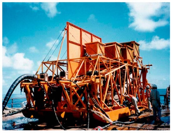 - Masuda, Y.; Cruickshank, M.J.; Mero, J.L. Continuous bucket-line dredging at 12,000 feet. In Proceedings of the Offshore Technology Conference, Dallas, TX, USA, 18–20 April 1971; pp. 837–841. [Google Scholar]