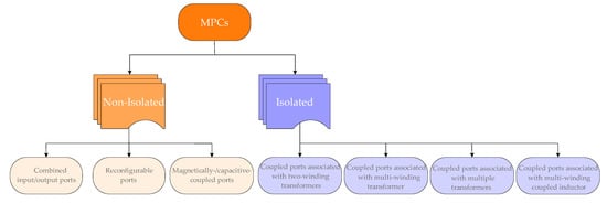 In general, MPCs represented in terms of MISO, SIMO, and MIMO architectures can be classified into two categories—that is, non-isolated and isolated topologies, as shown in Figure 1.