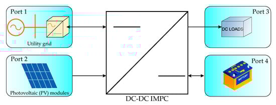 Multiport converters (MPCs) are a potential and versatile solution for this purpose, as they help achieve an efficient power flow control in a single power stage. This is also a cost-effective approach for hybrid power systems that will certainly integrate modern smart homes and DC microgrids in the near future. In contrast to traditional single-input, single-output (SISO) converters connected at a common DC bus to exchange power, MPC topologies present promising advantages, such as higher conversion efficiency, fewer components, the possible adoption of centralized control strategies and higher power density, as well as galvanic isolation for safety issues [7].