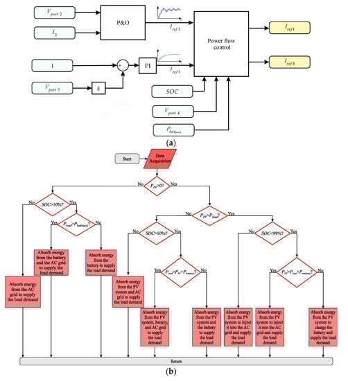 Overall, it is reasonable to state that the introduced control strategy ensures a smooth transition between the operating modes of the IMPC. Moreover, the power flow control of the proposed architecture occurs in accordance with the flowchart shown in Figure 18b.
