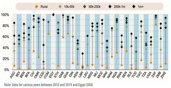 Share of households with access to electricity by country and city size (Source: OECD 2022 [23]).