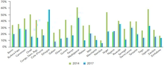 Decrease in cash agricultural payments across SSA between 2014 and 2017 (Source: World Bank Group [48]).