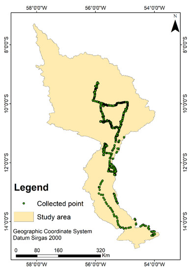 Distribution of points collected in the field in Brazil’s Teles Pires River basin in 2020.