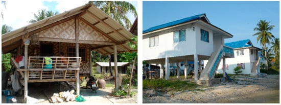 The climate adaptability and cultural appropriateness of the houses were also mentioned by [12] as the acceptance/rejection factors in resettlement schemes, including the legal issues relating to ownership and the availability and affordability of the social and physical infrastructure that determine the adaptability to the new environment after the resettlement. These factors were also obtained by our study relating to the land ownership problems that occurred when the Moklen, who had occupied the fishing communities along the Andaman coast for a long time without identification cards and title deeds, had conflicts with the government authorities and legal landlords. We also had concerns about the availability of infrastructure, especially water for households’ consumption and social participation in the reconstructed communities. Similar concerns about permanent housing reconstructions relating to the 2004 Tsunami were highlighted. In particular, the patterns and locations of housing, state-community participation, and a lifeline reconstruction process considering community-based planning, which empowers the impacted communities, families, and individuals to rebuild their housing, their lives, and their livelihoods. These points were also mentioned in [5,6,14,20,22]. For disaster risk reduction, to facilitate beneficiary community recovery and ensure the long-term sustainability and effectiveness of the housing program, the construction of resilient and acceptable housing is one of the key measures for housing-reconstruction program efficiency, which was summarized by [16].