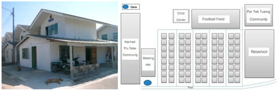 There were 511 one-story houses reconstructed in 12 projects: 125 units under five projects (Tub Tawan 1, Ruamsuk Tawee Sup Munkong, Lam Prakarang, Muang Mai, and Town House Ban Thung Ong) were reconstructed in the exact same locations, while 386 units under seven projects (Pui Pornthip, Krung Sri Bang–Pun In-see, Kachad-Pru Teow, Por Tek Tueng, Ruam Mue Ruam Jai, Ruam Jai–Surat Thani, and Thepparat) were built in new locations. Some patterns of the one-story house are presented in Figure 2.