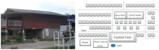 A similar pattern for houses in Bang Kaya was found in other projects, such as Rotary Pak Wip, Sutthachon, Rotary Lam Pee, Rotary Tub Pla, and Nam Sai (with a larger front porch and more space than the others). The pattern of the houses in Moolanithi Chaipaana–Kachad–Suppanimitre and Moolanithi Chaipattana–Kachad looked similar. The houses reconstructed in these projects had a larger living space than the others. However, the new pattern of two-story houses built in parallel lines (see Figure 9) was not familiar to nor did it fit with the lifestyle of Moklen Ban Thung Wah. The layout of the houses was not conducive for people to manage their usual cooking space and lifestyle and did not consider the natural environment for comfortable living. In addition, the arrangement of dwellings had blocked the wind flow in summer [30].