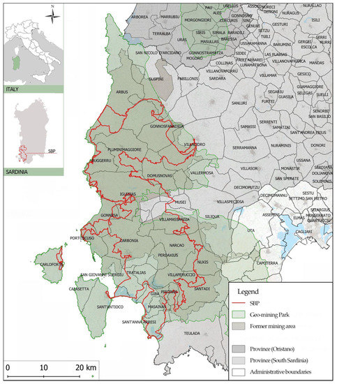 The mining activity of Sardinia has primarily involved the communities that have followed one another in the exploitation of subsoil resources; the traces of this industry, which has been influenced by the same historical events of the island, are clearly visible in the territory. It has undergone profound changes that currently characterize it. The features of the natural landscape are visibly marked by the material culture, social organizations, and settlements that have arisen around the mining activities, which have generated new and original forms of landscape and social and cultural environments, such as to characterize vast areas with a precise identity of universal value, unique and representative of the entire Mediterranean geo-cultural region. Considering all these values, the Sardinia Region, through the Sardinian Mining Authority, has intended to promote, starting from 1997, with the involvement of all institutional subjects authorities, first of all the Local Authorities concerned, the establishment of the Historical Environmental Geo-Mining Park of Sardinia (Geo-Mining Park) [55], which includes the most important mining districts, located in the Sulcis-Iglesiente-Guspinese, but also the most significant mining structures located in other areas of the island.
