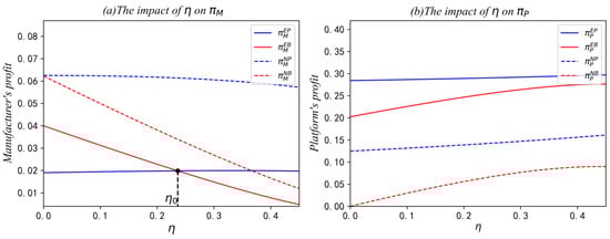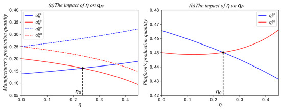 On the other hand, when the commission rate is high, the platform has to set a relatively lower interest rate to attract the manufacturer and stimulate its production. In this case, the sharing revenue accounts for a relatively high proportion of the platform’s total revenue. Therefore, the platform will also appropriately reduce the SB production quantity . In other words, the increase in commission rate makes the platform gradually shift its focus from direct selling revenue to sharing revenue, reflecting the platform’s resource allocation ability as an actual leader in the supply chain.