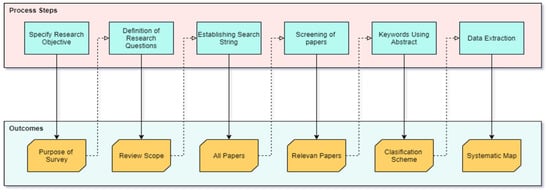 PRISMA’s systematic mapping study (SMS) [25] technique offers a way of verifying, analyzing, and categorizing results related to a specific topic or area of interest, thus making it possible to determine the scope of the research and classify the knowledge obtained.