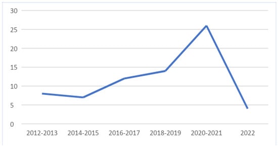 In Figure 5, we can see an increase in the last few years in papers related to transparency in electronic public procurement and E-government. The year 2022 is a natural drop if we consider the review times of papers to be published.