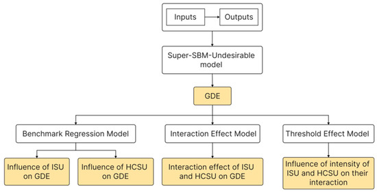 In this paper, SBM-Undesirable-DEA model was selected to estimate the GDE in resource-based cities in China, and the econometric model was used to analyze its influencing factors. The flow chart is shown in Figure 1.