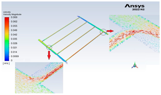 According to [40], the minor loss coefficients () for the entrance and exit tees are taken as 0.5 and 2, respectively, considering the contact between headers and risers is the sharp edge.