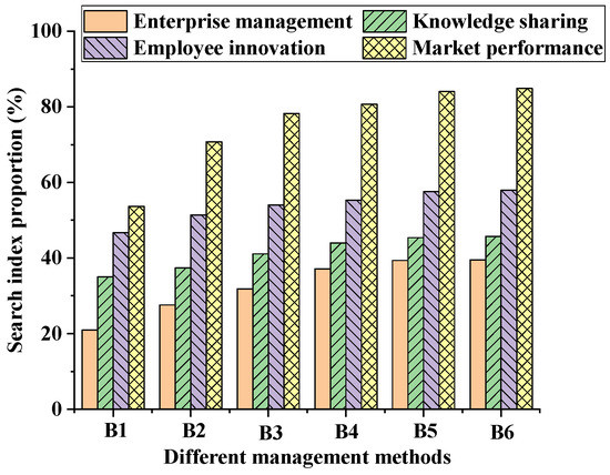 For obvious illustration, the factors restricting technology-based SMEs’ green production management and ecological innovation environment were analyzed, as shown in Figure 9. The results show that the innovation environment has a greater impact on product search, followed by the talent environment. This suggests that the market environment is the primary constraint, and the infrastructure environment is the least significant constraint. Therefore, the innovation of production management of enterprises needs to strengthen infrastructure construction in the financial climate.