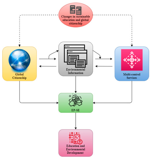 The development of environmental sustainability and learning is shown in Figure 3. With regard to global citizenship, environmental information is primarily incorporated for data transmission and retrieval. Every group collaborated on environmental information and multi-control services regulates all strategies for sustainable development. Some improvements were made to the newly introduced EP-SE framework in the developing global education system. Finally, environmental and sustainability planning was undertaken.