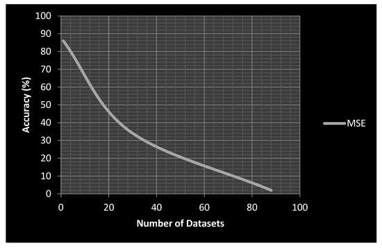 MSE indicates how far the predictions deviate from the target via the mean square error expressed in the above Equation (7). The weights are revised in this quantity during the training process. The loss function decreases during network training. If the actual observation is , is the expected observations, and is the number of observations. Root medium RMSE error is often seen as it is mainly used to measure the contrast between values predicted using a model or estimator with observed values.