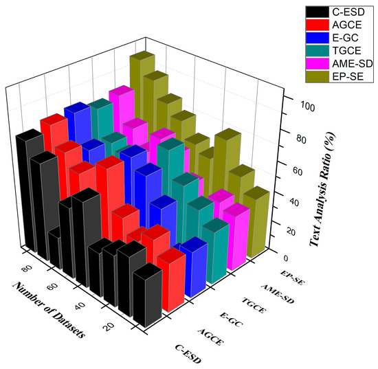 As shown in Figure 6, the analysis of a text is about scanning texts to extract facts that are readable by a computer. Text analysis is designed to generate structured data from free text. The procedure can be considered to slice and decorate unstructured, heterogeneous material into datasets that are easily managed and interpreted. Text analysis can identify a core concept of the text and analyze how it evolves while using a written strategy (a literary aspect or technique used in literature or rhetoric). To help with the analysis, using a solid and detailed text proof is recommended. Through Equation (5), the text analysis techniques have been improved.