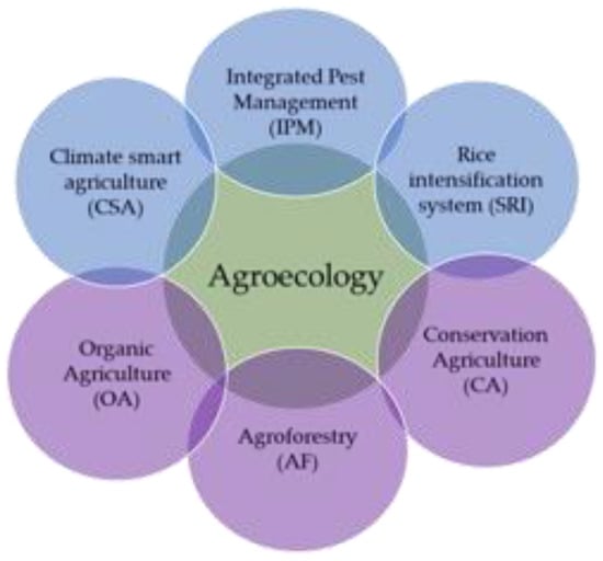 Conceptual overview of the various scientific approaches facilitating integrated resource management under the broader umbrella of agroecology and associated “agroecological practices”. Modified from Ref. [12].