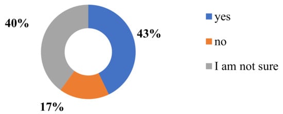 Furthermore, according to the results of the survey mainly respondents are living with families (approximately 16% of survey participants have less than 3 persons in the family and approximately 36%—between 3–5 persons) and they are interested to visit sensory garden with entrance fee, 43% (Figure 6). Therefore, we can see that families with more than 5 persons in the family will visit sensory gardens on a commercial basis and some of the families with 3–5 persons in the family as well. Therefore, it means that for the development of a sensory garden in the city, the municipality should plan some municipal support for different social urban groups.