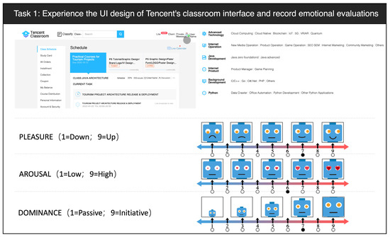 The convenience sampling technique was used to select all first-year students majoring in design at the university where the research team is based, a total of 52 students (21 males and 31 females). The age range of the subjects was between 18 and 22 years old, all voluntarily participated in this experiment, agreed, and knew the content of the experiment. To reduce the impact of the small sample size on the research results, the selected samples all possess a certain knowledge base of aesthetics and interaction design, are all in-depth users of Tencent Classroom, and have a good understanding and manipulation ability of the platform, thereby enhancing the objectivity and rationality of the evaluation process.