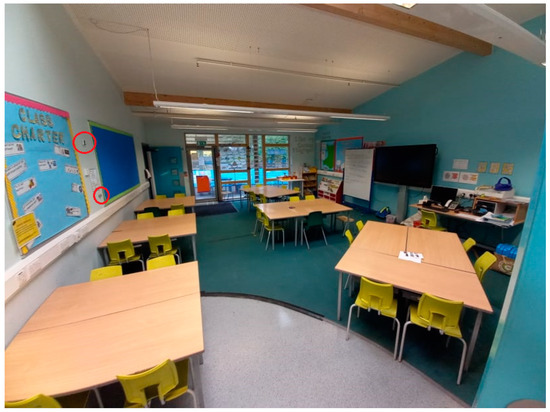 2 sensors are designed for ordinary built environments with temperature ranges between 0–50 °C and humidity 0–95% RH. One wireless sensor was placed in each classroom at a central position of the room, at chest height. Moreover, a second CO