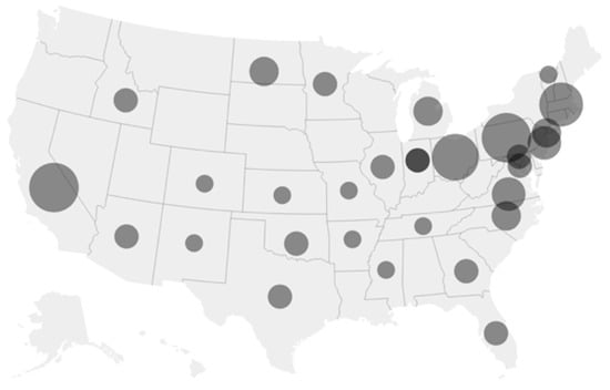 By country, most references gathered come from colleges and industrial members in the US and the UK. Statistically, the references from the US comprise 40% of the total, while 8.5% come from the UK. Since the US covered such a reasonable percentage of all the references gathered, it was essential to see the spread of the efforts through the nation in twenty-five years. It was estimated that 10.5% of the initial 40% of references originated in the state of California, and another 10.5% were completed in Pennsylvania. In addition, it was seen that Ohio and Massachusetts have kept an active record in publishing works about resilience and survivability, demonstrated by their respective percentages of 9.3% and 8.1%. The other states record a count below 5% of the total; consult Figure 6 for more details on the spread and concentration of research efforts in a single area. No tendency was perceived on whether more references come from the East or West Coast of the US. As noted from the 10.5% tie that serves as a contrast between the East and West Coasts, both sides have contributed to the overall understanding of either resilience or survivability in terms of conceptualization and application. No trends implicate that one side of the nation has dedicated efforts to one theme over the other or to conceptualization more than application.