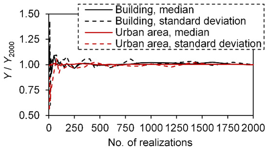 where I is the number of buildings in the target area. Finally, by repeating a sufficient number of realizations, the median and confidence interval of PTE can be predicted based on the PTEs,i and PTEs values of all realizations.