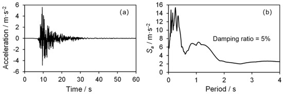 The 1679 Sanhe–Pinggu earthquake was selected as the target scenario given that it was the most recent strong earthquake in Beijing. The simulated ground motion [23] with a peak ground acceleration (PGA) of 5.6 m/s2 obtained from the Institute of Geophysics of China Earthquake Administration was used as input (Figure 9). The same PGA was used for all buildings for simplicity as the campus area was not large.