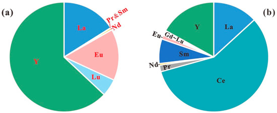 Contribution percentage of REEs in THQ (a) and RiskTotal (b). THQ is the total amount of non-carcinogenic risks caused by tea drinking. RiskTotal is the total of carcinogenic risk caused by drinking tea.