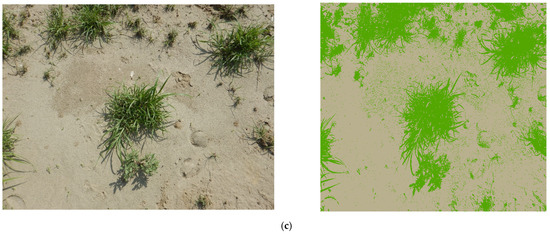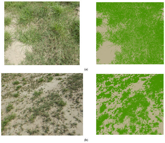 The estimation of green vegetation cover percentage was calculated from the Images via a supervised classification technique using VegMeasure software® [39]. VegMeasure is a technique that allows vegetation measurement through non-destructive approach. This software interprets the color from the images taken from the digital camera to formulate meaningful classes and allows the customization of images. The current study only utilized two classes (i.e., vegetation cover and bare ground or soil).
