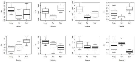 Box plots depicting micro- and macro-minerals distribution along the settlement gradient.