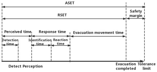 The REST is the minimum time for all personnel to evacuate to the safe area. As shown in Figure 9, it consists of three parts: personnel perception time (tper), personnel response time (trsep), and personnel evacuation movement time (tmove). The difference value of the ASET and RSET is the safety margin, and the larger the safety margin, the more reliable the reaction system is.