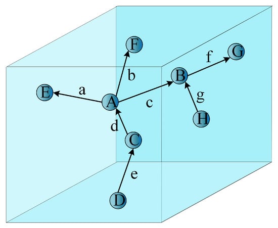 In the traditional construction of a directionless interference graph, adjacent links, or links with common adjacent links are considered to interfere with each other. For example, link c is adjacent to links a and f. It generates receive interference at endpoint B of link c. The interference graph is obtained as shown in Figure 7a. However, in the scenario discussed in this study, data are transmitted from bottom to top, and nodes on the same layer do not transmit downward or parallel, and information is only sent from endpoint B to endpoint G. Therefore, interference between link a and link f is eliminated. The interference graph after optimization is shown in Figure 7b.